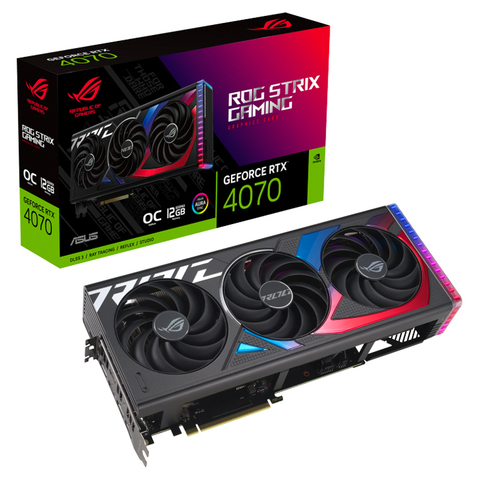 Sử dụng ASUS ROG Strix GeForce RTX 4070 12GB oC gddr6x Card đồ họa với 12GB gddr6x Bộ nhớ video và 12GB gddr6x Bộ nhớ video